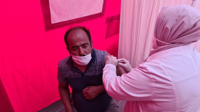 Karabük'te kent merkezine kurulan aşı çadırında aşılama çalışmaları devam ederken, bugün itibarı ile Karabük nüfusunun yarısından fazlasına 1. doz aşı yapıldı.