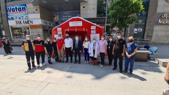 Hastanelerde, aile hekimliklerinde aşı faaliyetlerinin devam ettiğini söyleyen Sarı, bunun dışında mobil aşılama faaliyetlerini de sürdürdüklerini vurgulayarak, "Hafta içerisinde bir hafta boyunca Hürriyet Caddesi'nde aşılama faaliyetine devam edeceğiz. Vatandaşlarımızdan birinci, ikinci ya da üçüncü doz aşı olmak isteyen herkesi bekliyoruz. Randevu olmaksızın burada aşı yapabiliyoruz. Hastanelerimizde ve aile hekimliklerimizde randevu ile gittiklerinde daha rahat bir ortamda aşı olabilirler. Biz vatandaşımıza her imkanı sağlamaya çalışıyoruz. Vatandaşlarımızdan da tek isteğimiz aşılarını olmaları ve ülkemizin ve dünyanın içinde bulunduğu bu sıkıntıdan bir an evvel kurtulmamıza vesile olmaları, yardımcı ve destek olmaları" ifadelerini kullandı.