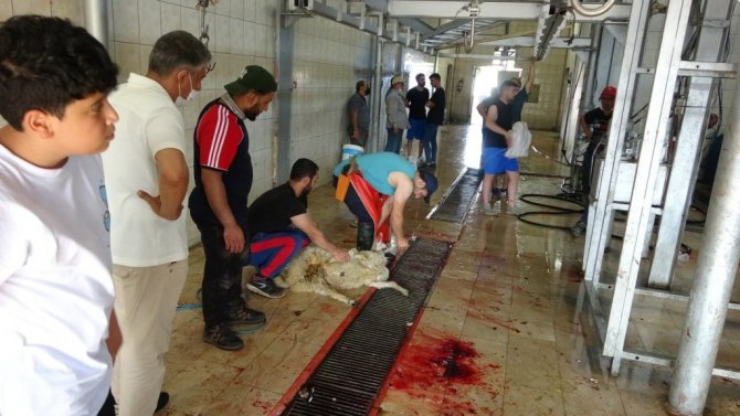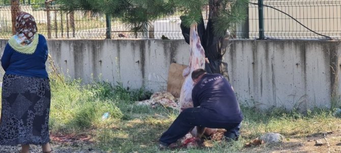 Karabük'te büyük ve küçükbaş hayvan satışının yapıldığı pazarda bayramın 1. gününde de hareketlik devam ediyor. Mezbahanede yer bulamayan vatandaşlar kurbanlarını dışarıda kesti.