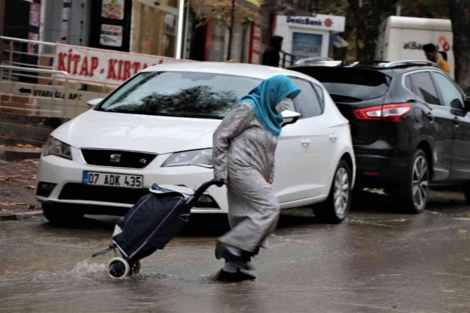 Sağanak yağış nedeniyle tıkanan rögarların taşması sonucu dükkanlar su basma tehlikesiyle karşı karşıya kaldı.