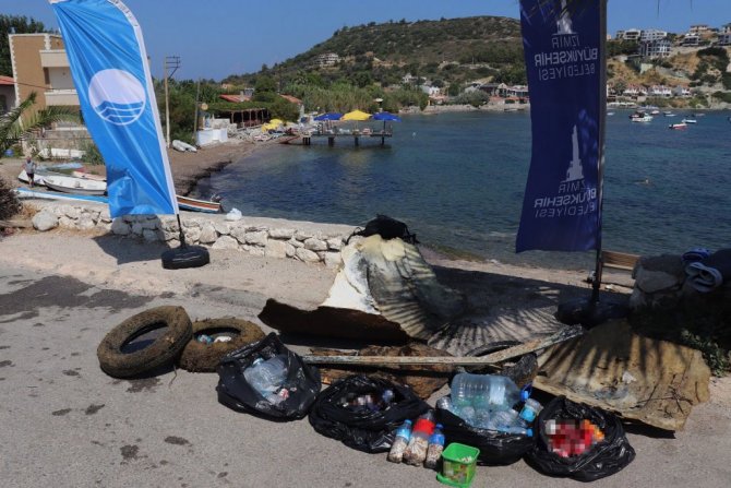 Karaburun’da kıyı temizliği: Araba lastiği de çıktı, içecek kutusu da