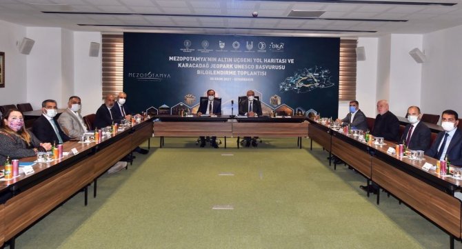 Diyarbakır ve Şanlıurfa valilerinin katılımıyla Mezopotamya'nın Altın Üçgeni Yol Haritası ve Mezopotamya Karacadağ Jeopark Başvurusu sürecine ilişkin yapılan çalışmalar ve gelinen aşamaya ilişkin toplantı düzenlendi.