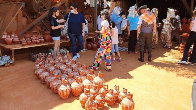 Renkli görüntülere neden olan festival ve çalıştayın ilk gününde Karacasu ve seramik atölyeleri doldu taştı.
