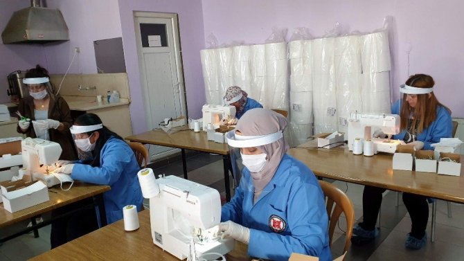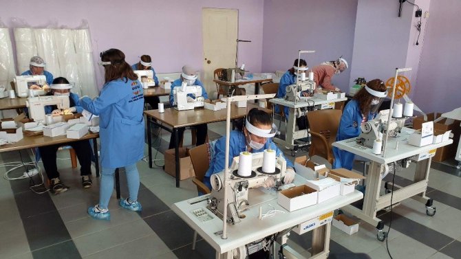 Karacasulu kadınlar kaymakamlık öncülüğünde maske üretiyor