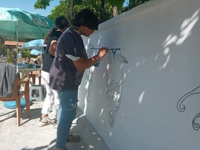 Karacasu Belediyesi ile özel bir boya firması işbirliği ile başlatılan ve ilçe girişinden başlayıp merkeze kadar yapılacak resim ve boyama etkinliği çalışmaları Ege Sanat Birliği sanatçılarının gönüllü çalışması ile devam ediyor.