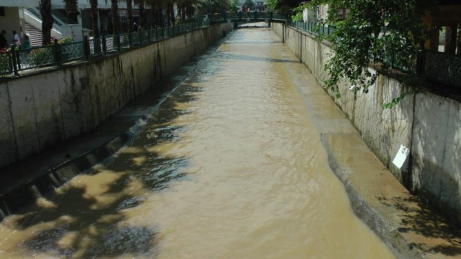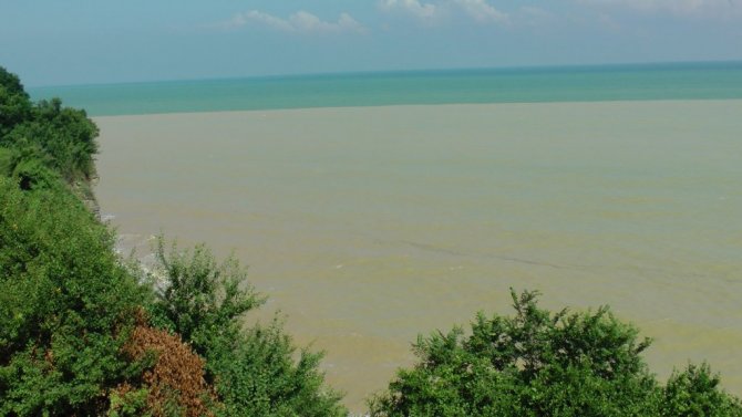 Batı Karadeniz bölgesi Akçakoca'da meydana gelen sağanak yağış sonrası dere yataklarının taşmasıyla Karadeniz çamura büründü.