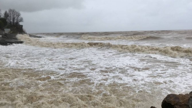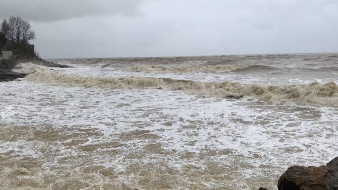 DÜZCE (İHA) – Düzce'de sağanak yağış ve lodos etkili oluyor. Dalga boyu 4 metreyi aşarken, denizin rengi ise kahverengiye döndü.