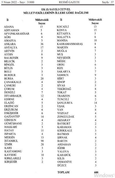 Yüksek Seçim Kurulu (YSK), hangi ilden kaç milletvekilinin çıkacağını Resmi Gazete'de yayımlandı. Cumhurbaşkanlığı seçimleri yaklaşırken illerin kaç milletvekili çıkaracağı Resmi Gazete'nin bugünkü sayısında duyuruldu. Karadeniz Bölgesi'nde geçen düzenlemede 66 olan milletvekili kontenjanı sayısı Bayburt'tun vekil sayısının 1'den 2'ye yükseltilmesiyle 67'ye yükseldi.