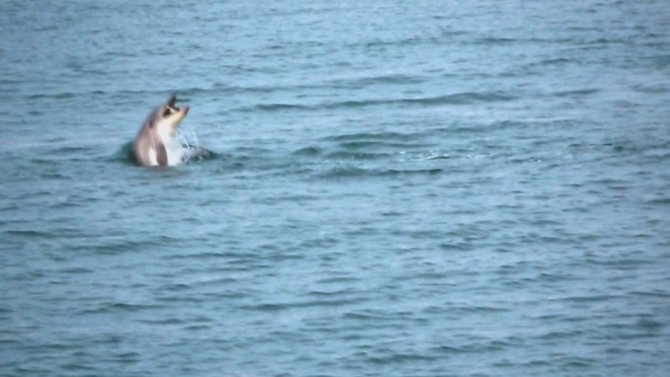 Yunusların suyun üzerinde balık yakalarken adeta dans etmeleri kameralara yansıdı. Koşu Mahallesi Balıkçı Barınağı yakınlarına kadar gelen bir grup yunus sahile renk kattı. Yakaladıkları balıklarla karınlarını doyuran yunuslar bir süre sonra gözden kayboldu.