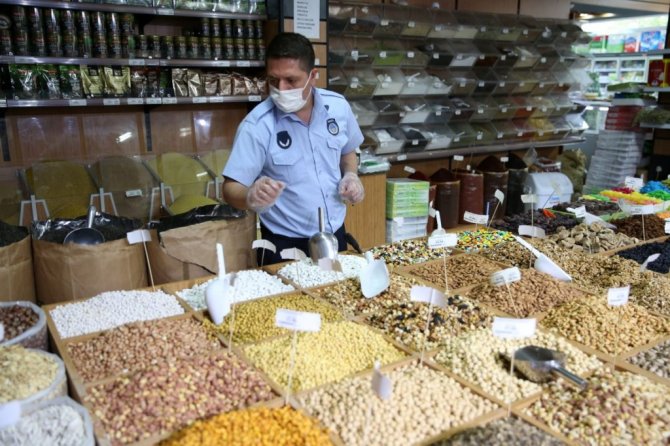 Pandemi tedbirleri konusunda da işletmelere uyarılarda bulunan zabıta ekipleri alışveriş sırasında maske ve mesafe kurallarına riayet edilmesini istediler.