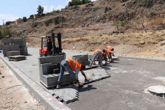 Karaköprü Belediyesi, yeni açılan yollarda kilitli parke döşeme ve kaldırım çalışmaları gerçekleştirerek hizmete sunuyor.