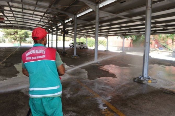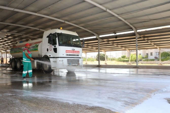 Karaköprü Belediyesi, Kurban Bayramı öncesi vatandaşların sağlıklı koşullarda kurban kesimi için kesim alanlarında temizlik ve dezenfekte çalışması...