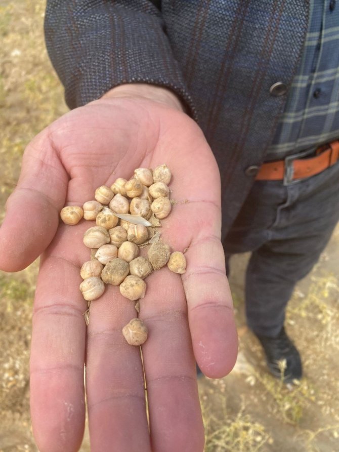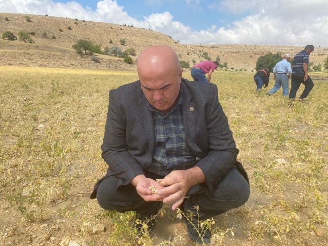 Karaman’da aniden yağan dolu, nohut tarlalarına zarar verdi