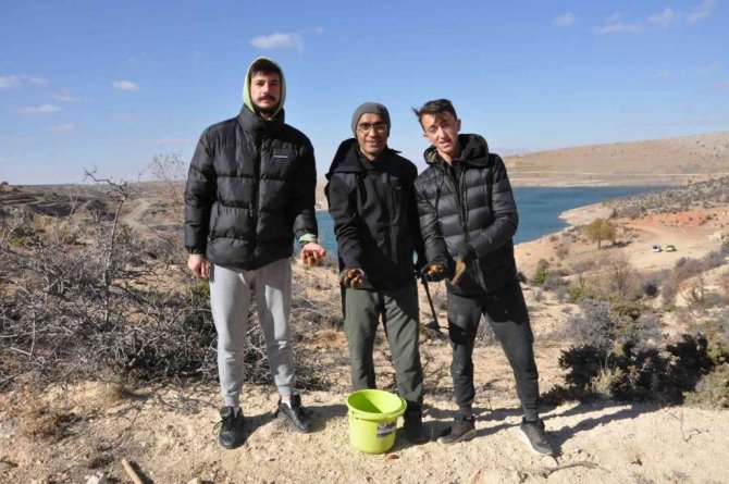 Karamanoğlu Mehmetbey Üniversitesi (KMÜ) Spor Bilimleri Fakültesi'nde Araştırma Görevlisi olan Dr. Ali Sevilmiş, boş zamanlarında topladığı 10 bin meşe palamudunu toprakla buluştururken, hedefi olan 50 bin meşe palamudunu toprakla buluşturmak için kolları sıvadı.