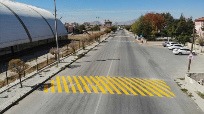Karaman’da yol çizgisi ve yaya geçidi çalışması