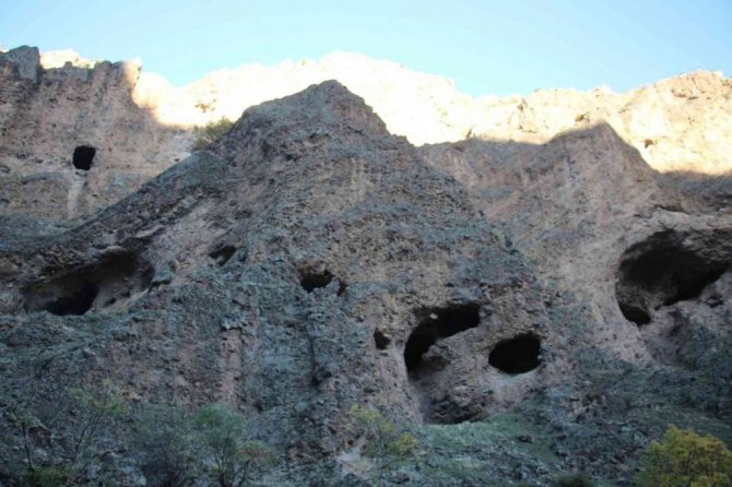 Oltulu Doğaseverlerden Avukat Muharrem Kalyon, "Nişantaşı köyü Karanlıkdere Kanyonu'ndayız. Kanyonun takiben 5 kilometre mesafesi var. Rehber eşliğinde yürünebilir. Turizme kazandırılması gerekiyor diye düşünüyorum. Burada eski yerleşim yeri mağaralar var. Arkadaşlar tırmanmaya çalışıyorlar" dedi.
