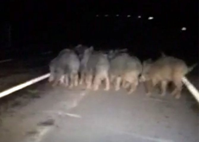 Ardahan'ın Hanak ilçesinde, onlarca domuzun kara yolunda araçlara aldırmadan koşması amatör kamera tarafından kayıt altına alındı.