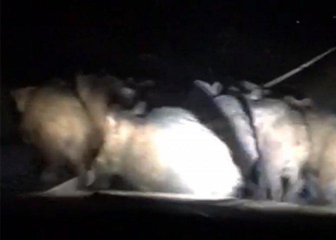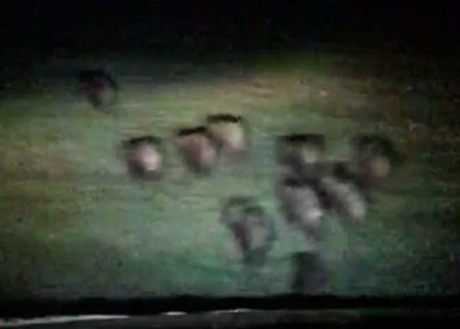 Olay, Hanak-Ardahan Karayolu arasındaki Altaş köyü mevkiinde gece saat 12.00 sularında meydana geldi. Görüntülerde, otomobil sürücüsü karayolunda ilerliyor. İçerisinde yavruların da bulunduğu 15'e yakın domuzdan oluşan sürü, yolu kapatarak koşuyor. Ardından ise otomobil sürücüsünün korna çalması sonucu yoldan çıkarak araziye doğru ilerleyerek gözden kayboluyor.