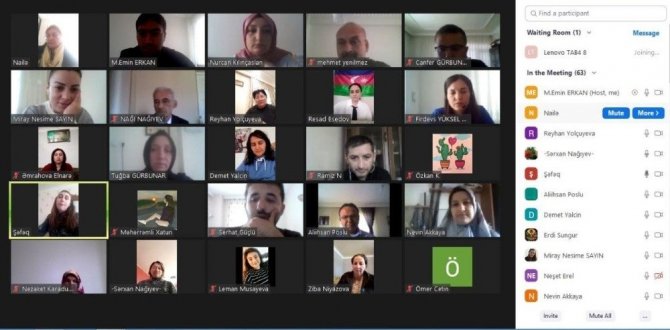 Agstafa İlçe Milli Eğitim Müdürü Meded Zeynalov, "Böyle bir toplantıda Türk kardaşlarımızla bir araya gelmek onlarla tanışıp muhabbet etmek bizi onurlandırdı. İnşallah bu görüşmemiz Yüz Yüze de gerçekleşir ve can gardaşımız Türkiye muallimleri ile daha farklı projelerde bir araya geliriz" dedi ve toplantıya katılanlara teşekkür etti.