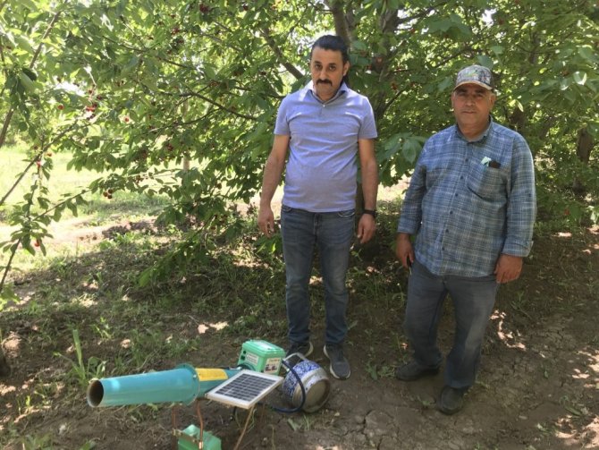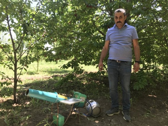 Iğdır'a bağlı Yaycı köyünde 12 dönüm arazi üzerinde kiraz bahçesi bulunan Caner Akkoç isimli çiftçi, "Ben o zaman bu ürünü kuş kovucu diye aldım. Bu ürünü 2018 yılından beridir kullanıyorum. Biz bu yörede bu düzeneğe Karga savar diyoruz. Bu bölgede bulunan Karga ve Saksağan gibi kuşları bu ürün yardımıyla kovuyoruz. Özellikle erkenci ürün dediğimiz çeşitlilik döneminde kuşlar bize çok zarar veriyordu. Ben bütün ürün çeşitleri ve dönemlerde kullanıyorum. Küçük tüple çalışıyor ve ayarlı olduğu için istediğimiz zamana göre ayarlayabiliyoruz. Şuan 2 dakikaya ayarlı olduğu için 2 dakikada bir patlatıyor. Sadece kuşlar değil yabani bütün hayvanları bahçeden uzak tutuyor" dedi.