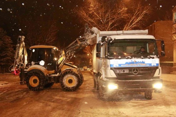 Karın başkenti Erzurum’da ekipler seferber oldu