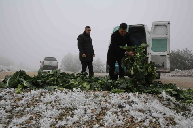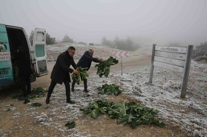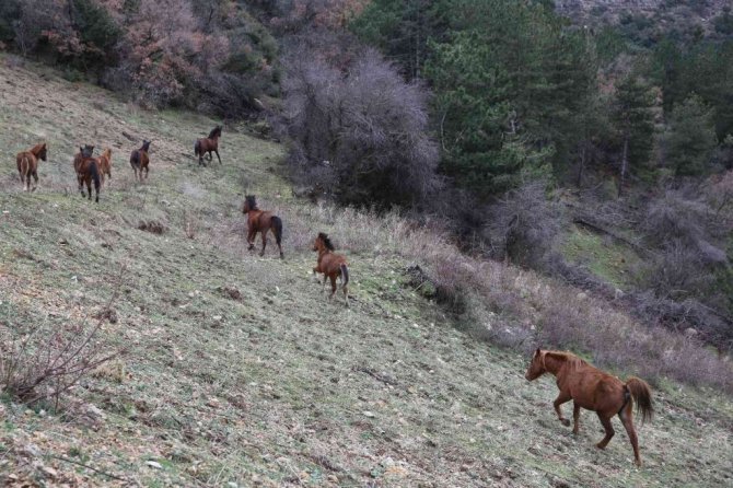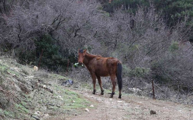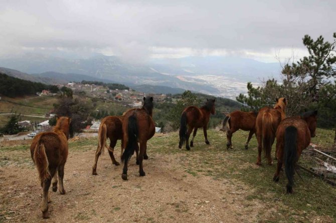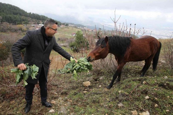 Karla kaplanan Spil’deki yılkı atlarına şefkat eli