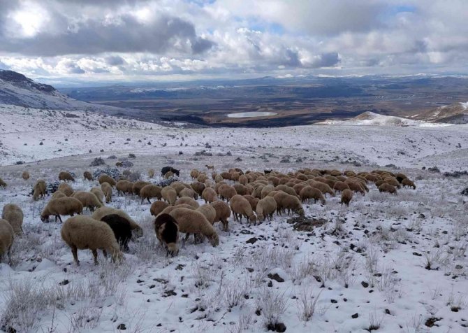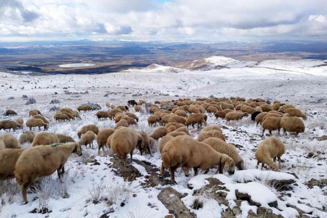 Sivas'ta geçtiğimiz gün etkili olan kar yağışı yüksek kesimlerde meraların karla kaplanmasına neden oldu. Küçük baş hayvan yetiştiricileri yağan kara rağmen koyunlarını otlatmaktan vazgeçmedi. Sivas'ın Ulaş ilçesi Demircilik Köyünde küçükbaş hayvan yetiştiriciliği yapan Hüseyin Öntaş, sürüsünü karla kaplı meralara sürdü. Koyunlar kar boyunu aşan kuru otlarla beslendi. Kapla kaplı merada yayılan koyunlar güzel görüntüler oluşturdu.