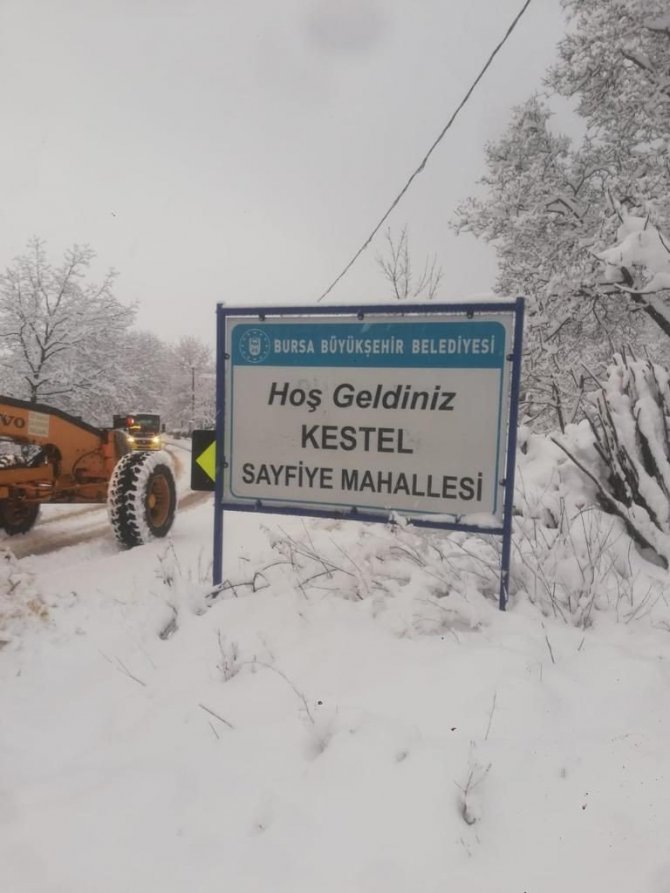 Bursa Büyükşehir Belediyesi Ulaşım Daire Başkanlığı Ekipleri, 17 ilçedeki karla mücadele çalışmaları kapsamında son 24 saat içinde kardan kapanan 25 mahalle yolunu trafiğe açarken, kar yağışının devam ettiği bölgelerde ekiplerin çalışması devam ediyor.