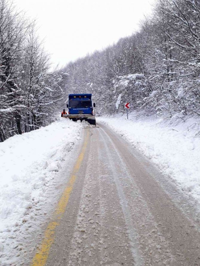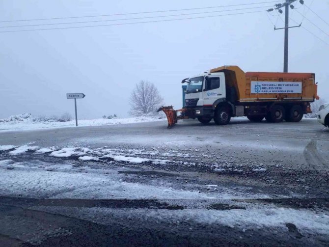 Kocaeli Büyükşehir Belediyesi karla mücadele ekipleri, yüksek kesimlerde etkisini gösteren kar yağışında buzlanma oluşmaması ve yolların kapanmaması için çalışmalarını sürdürüyor.