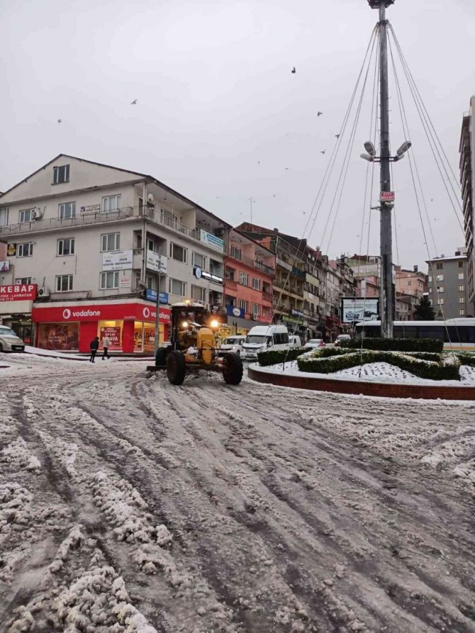 Zonguldak'ın Ereğli ilçesi Belediyesi sabah saatlerinde etkili olan kar yağışına karşı her hangi bir olumsuzluk yaşanmaması için tüm ekip ve araçlarıyla sahada mücadele çalışmalarına başladı.
