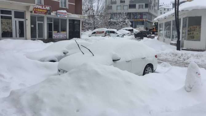 Bingöl'ün Karlıova ilçesinde etkili olan kar nedeniyle araçlar adeta kar altında kayboldu.
