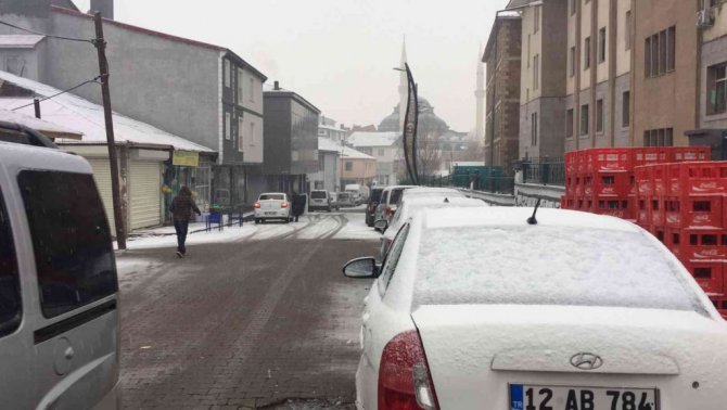 Meteoroloji Genel Müdürlüğü'nün uyarısının ardından Bingöl'ün kuzey ilçelerinden biri olan yüksek rakımlı Karlıova ilçesinde kar yağışı başladı.