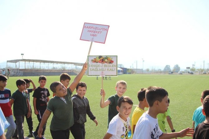 Gerçekleştirilen yürüyüş sonrasında Karpuzlu İlçe stadyumunda çuval yarışı, yumurta taşıma, halat çekme, kısa mesafe koşu yarışı, penaltı atma oyunları oynandı ve dereceye giren öğrencilere çeşitli hediyeler verildi. Obezite den korunmak adına düzenli fiziksel egzersizin ve dengeli beslenmenin öneminin vurgulandığı etkinlik sonunda öğrencilere elma ve su dağıtıldı.