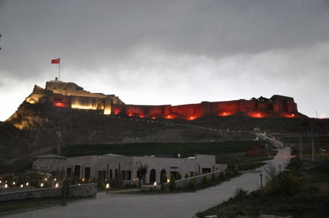 Kars Kalesi, DMD’li çocuklar için kırmızı ışıklandırıldı