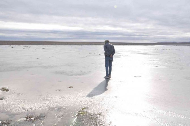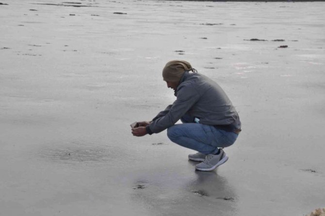 Kars’ın soğuğu gölü dondurdu