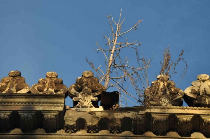 Uzun yıllardan beri sahibi tarafından boşaltılan ve kaderine terk edilen Haydar Aliyev Caddesi'nde bulunan ve Ruslar tarafından yaptırılan tarihi binanın duvarları ve bacasında filizlenip boy veren ağaçlar, köklerinin duvar içerisinde ilerlemesiyle tarihi binayı yıkılma tehlikesiyle karşı karşıya bıraktı.