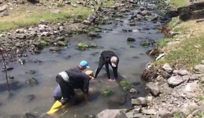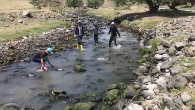 Kars'ta kuraklıktan dolayı dere çekilirken, köylüler balık tutmak için adeta dereye koştu. Dereye koşan köylüler, suya girerek elleriyle balıkları tutmaya çalıştılar, düşe kalka yapılan balık avı kameralara yansıdı.