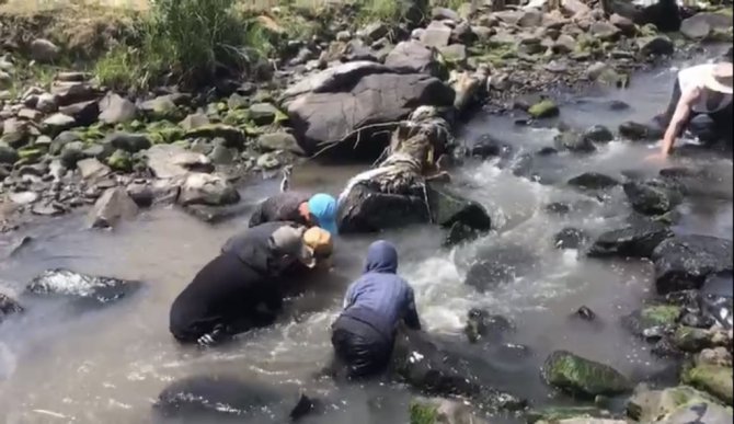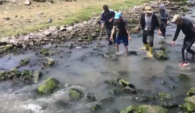 Elbiseleriyle dereye giren köylüler, balıkları elleriyle yakalamak için yoğun çaba sarf etti. Her defasında kaçmayı başaran balıklar, köylülere zor anlar yaşattı. Düşe kalka ıslanarak balıkları tutmaya çalışan köylüler, elle balık tutma da başarılı olamadılar.