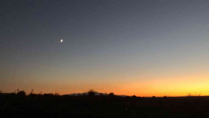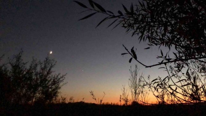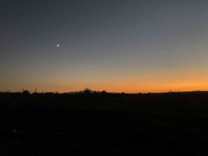 Kentte meydana gelen kızıllık, kartpostallık görüntüler ortaya çıkarırken, gökyüzündeki ay ile yıldız ise kameralara yansıdı.