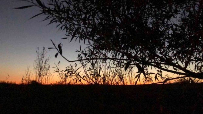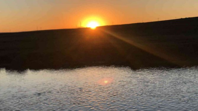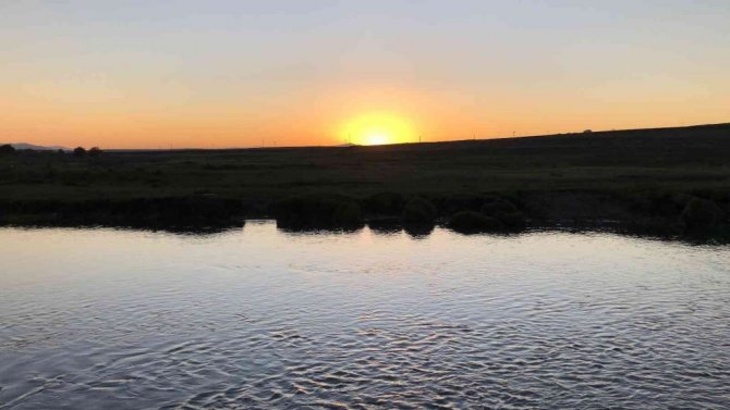 Kars Benliahmet köyünde gün batımı sırasında gökyüzünde ortaya çıkan kızıllığı gören vatandaşlar, bir taraftan manzaranın tadını çıkartırken,...