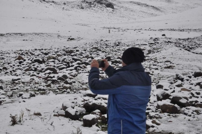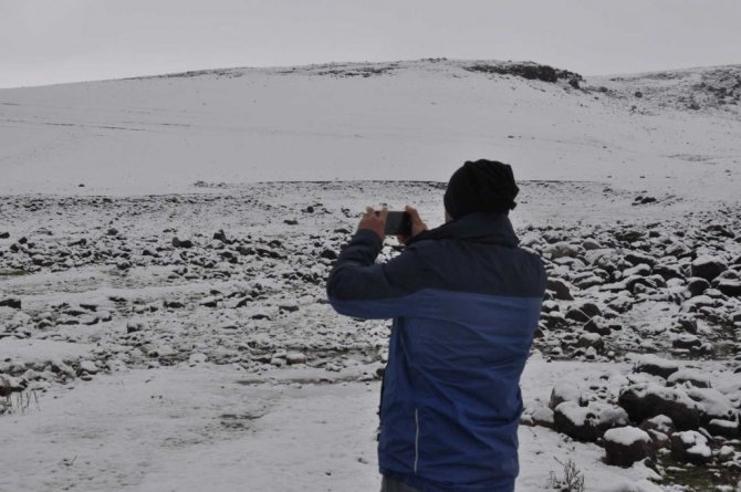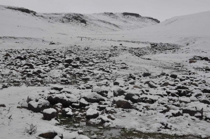 Kars'ın yüksek kesimlerinde sabaha kadar yağan kar etrafı beyaza bürüdü.