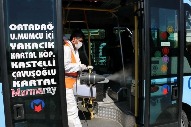 Covid-19 virüsünün neden olduğu salgın ile birlikte Kartal Belediyesi Temizlik İşleri Müdürlüğü'nün rutin faaliyetlerinden biri haline gelen dezenfekte çalışmaları ise tam kapanma döneminde de devam ediyor. 3 kişiden oluşan 4 farklı ekip tam kapanma döneminde faaliyette olan kamu kurumlarını, hizmet binalarını, toplu taşıma araçlarını, sağlık kuruluşlarını ve talep edilen binaları dezenfekte ediyor. Özel solüsyon kullanan ekipler, bu güne kadar 16 milyon metrekareden fazla alanı dezenfekte etti.