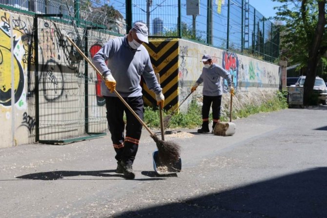 Müdürlüğe bağlı 110 personel ise cadde ve sokakların temizliği ve süpürülmesinden sorumlu. Mevsim şartlarının da değişmesiyle sokakları çöpün yanı sıra polen ve kuru otlardan süpürerek temizleyen ekipler, alerji sorunu olan vatandaşların rahat nefes almasını sağlıyor. Çöp toplama araçlarında çalışan ve 3 vardiya halinde sayıları 200'ü aşan personel ise her gün 10 binden fazla çöp konteynerini boşaltıyor. Bazı yoğun bölgelerde çöp konteynerleri birkaç kez boşaltılırken temizlik faaliyetleri gece saatlerinde de durmuyor ve bu kez 14 araç ilçe genelinde çöpler toplanıyor.