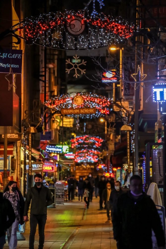 Eğlence mekânlarının bulunduğu Hamam Sokak ile Kızılay Bulvarı ve Çınar Caddesi de led lambalarla kurulan ışık perdeleri ve taklarla boydan boya ışıklandırıldı.