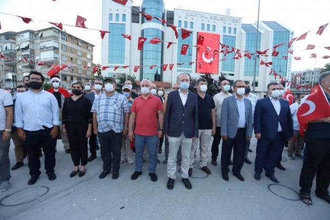 Anma programının ardından Kartallı vatandaşlar sabahın ilk ışıklarına kadar ilçe meydanında demokrasi nöbeti tuttular.