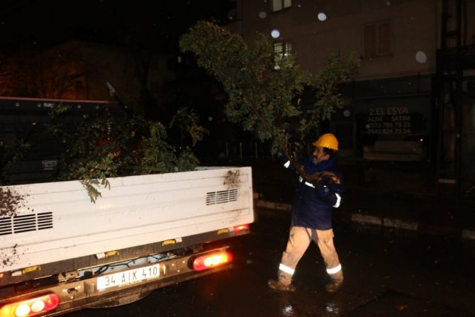 Fen İşleri, Temizlik İşleri, Destek Hizmetleri, Zabıta Müdürlüğü, Sivil Savunma Uzmanlığı ve Park Bahçeler Müdürlüğü ekipleri, vatandaşlardan gelen ihbarlara müdahale ederek yaşanan olumsuzlukları giderdi. Fırtınada devrilerek yolları kapatan ağaçlara müdahale eden Park ve Bahçeler Müdürlüğü ekipleri, gece boyunca yoğun mesai harcadı.