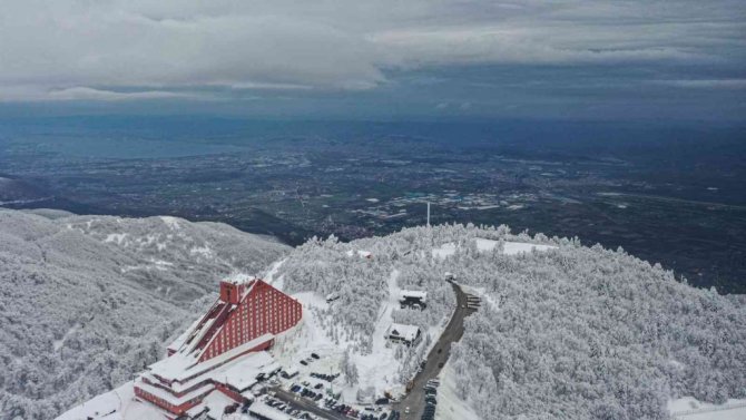 Kocaeli'nin Kartepe ilçesinde bulunan kayak merkezinde kar kalınlığı bir metreye ulaştı. Özellikle haftasonu Marmara bölgesinden ziyaretçilerini ağırlayan Kartepe, fotoğraf tutkunlarının da uğrak noktası. Kartepe'nin havadan çekilen görüntülerinde ise manzara kendisine hayran bırakıyor. Zirvenin karlı kaplı görüntüsü ile Sapanca Gölü'nün doğal güzelliği aynı karede yer alıyor.