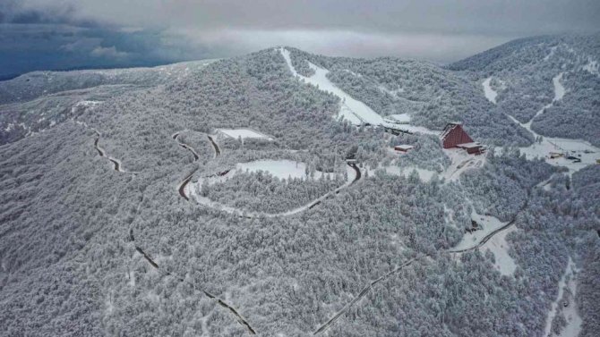 Marmara bölgesinin önemli kış turizm merkezlerinden Kartepe'de kar kalınlığı 1 metreye ulaştı. Drone ile çekilen görüntüler nefes kesti.