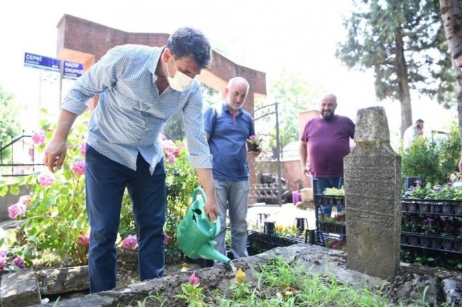 Öte yandan Kartepe Belediyesi tarafından arife günü mezarlıklarda çiçek dağıtımı gerçekleştirildi. Şehitlerin kabirlerine Başkan Kocaman kendi elleriyle çiçek dikerken, Kartepelilere 50 bin çiçek dağıtımı yapıldı.