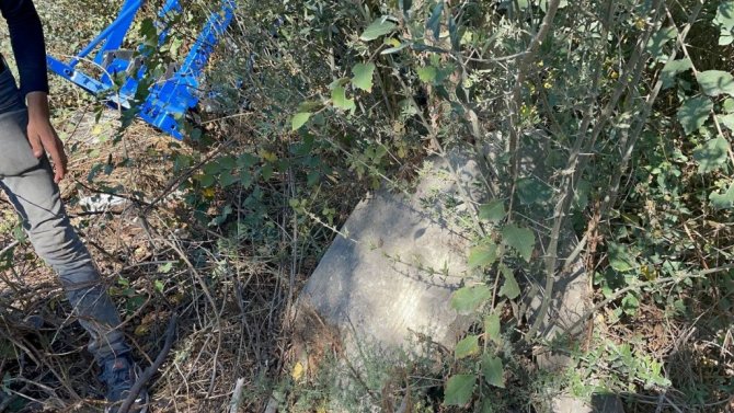 Bursa'nın İznik İlçesinde karton toplayan genç, tarlada Osmanlı dönemine ait mezar taşları buldu.